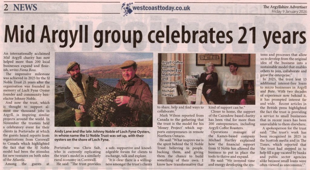 The Trust is set up in memory of Johnny Noble, Chairman and co-founder of Loch Fyne Oysters who died in 2002.
